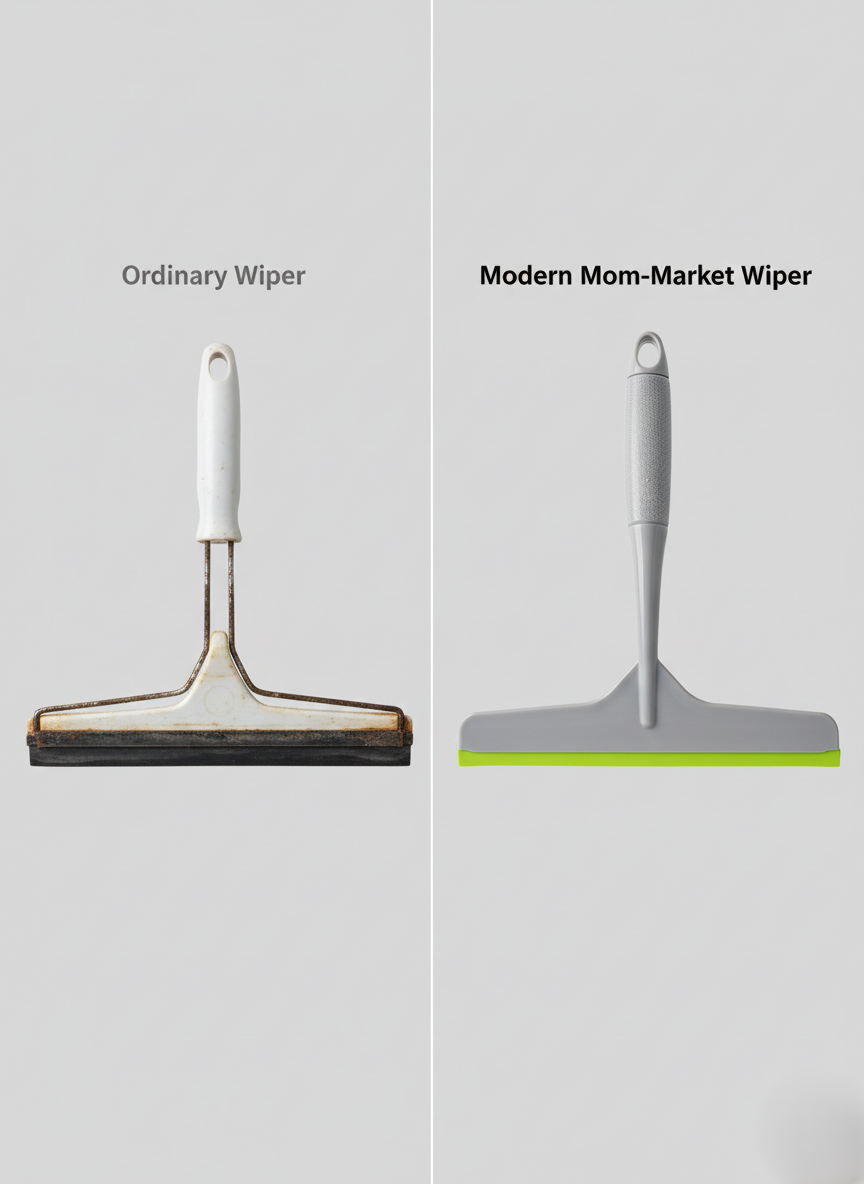 Co-moulded soft TPR lip removes water efficiently without leaving marks.
